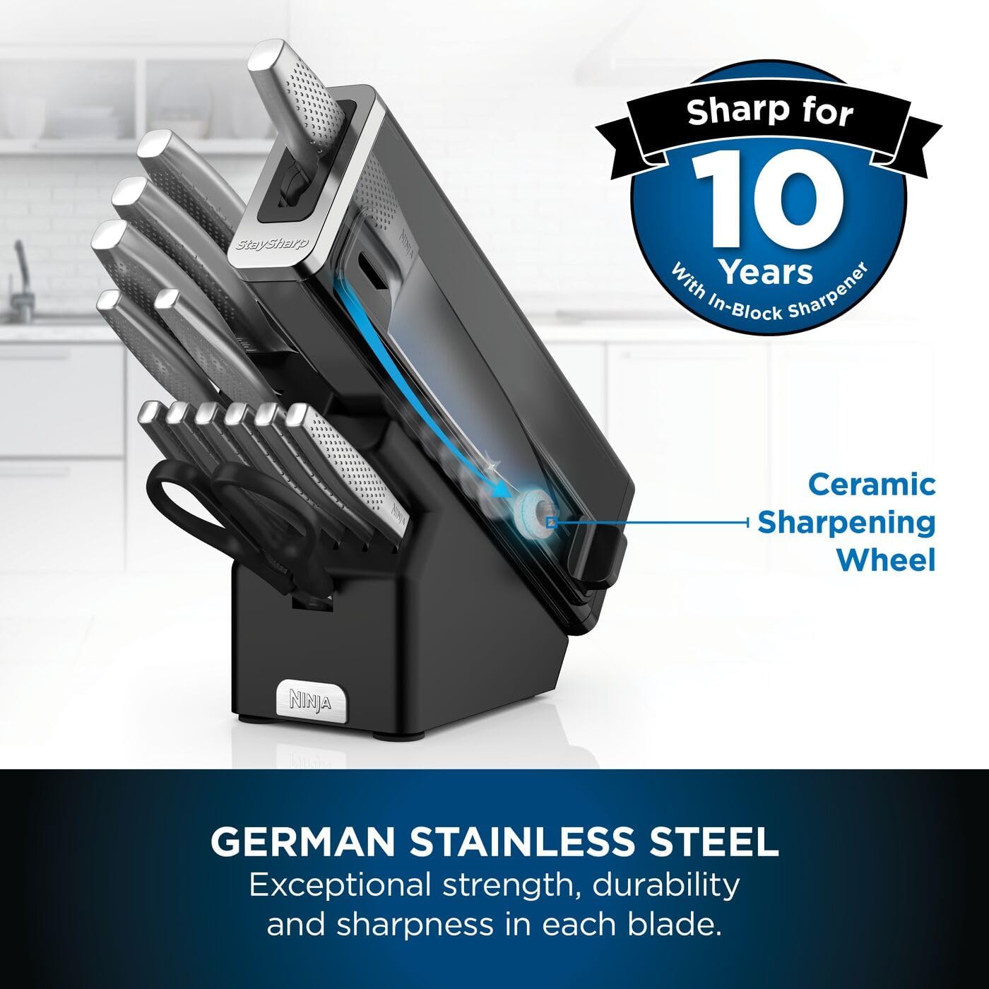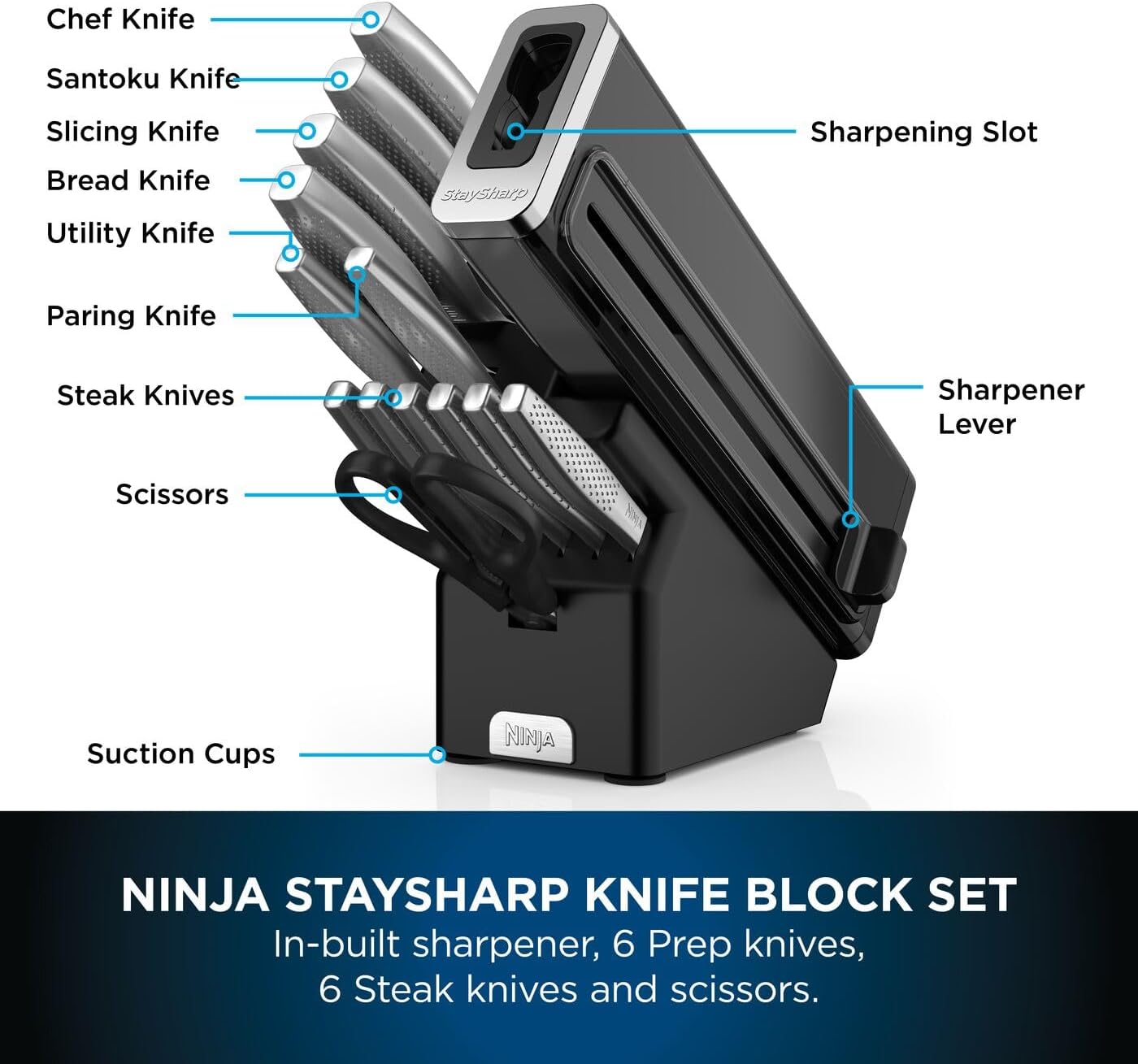 Ninja StaySharp 14-Piece Stainless Knife Set, Wood Block & Built-In Sharpener K62014EUUK