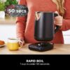 RAPID BOIL: Quickly boil 1 cup in under 50 seconds. This fast boil kettle features 3000W of power and a large 1.7L capacity – enough for 7 cups of tea or coffee.