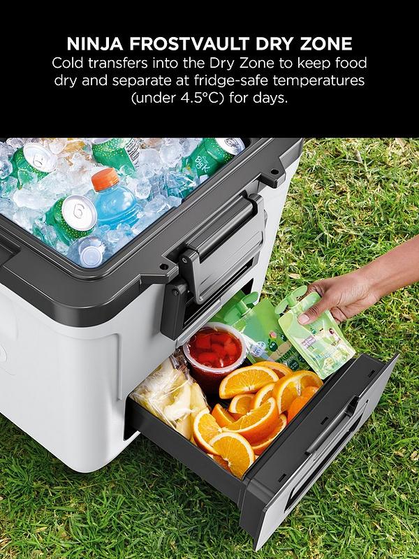 FrostVault Technology: Cold transfers into the Dry Zone drawer to keep food cool, dry and separate at food-safe temperatures (under 4.5°C) for days*. Easily grab your favourite items from the Dry Zone without digging through ice or opening the lid.