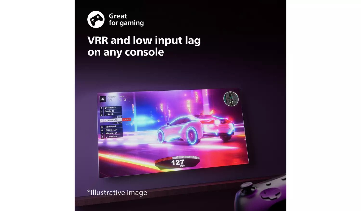 HDMI VRR lets you get the best from your console, with fast gameplay and smooth graphics. Low-input-lag setting activates automatically when you turn on your console.