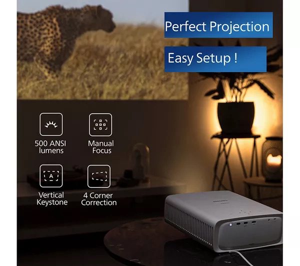 Watching the latest blockbuster is easy on this Philips NeoPix projector. With LuminOS under the hood, all your favourite streaming services from Disney+ to Prime are ready and waiting for a binge. Can’t remember your Netflix password? Just use WiFi to cast content from your phone to the screen. And with a projection up to 100″ you can fill your entire wall with the action.