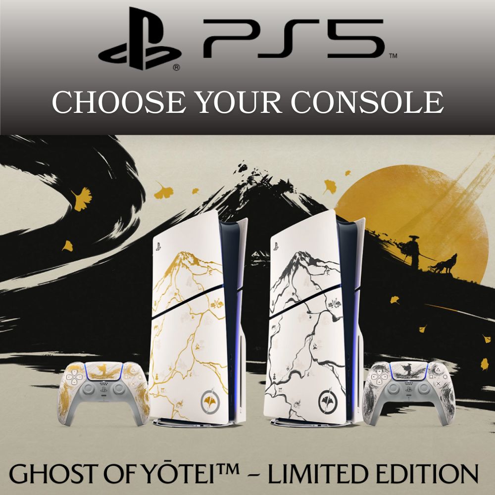 Explore every inch of the breathtaking lands surrounding Mount Yōtei with the PlayStation®5 Console – Ghost of Yōtei Limited Edition Console.