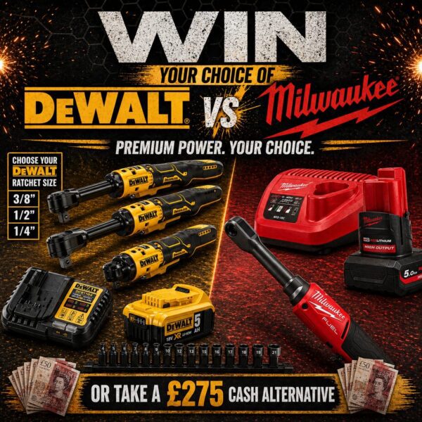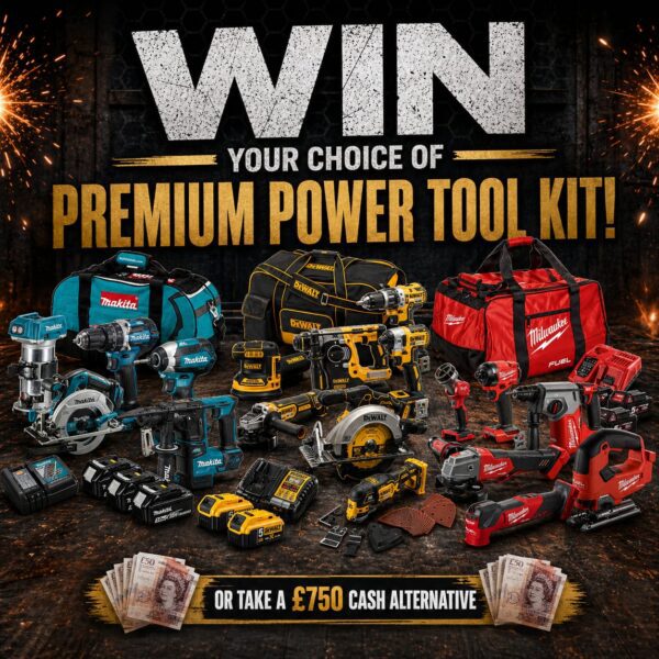 This competition is open to UK residents aged 18 or over. You may enter this competition up to 200 times. You will be randomly allocated ticket number(s) when ordering and will receive an email confirmation. The total amount of tickets for this competition is (1999). If all tickets do not sell out, the draw will happen on May 11, 2026 regardless. You must answer the competition question correctly to be entered into the live draw. Incorrect entries will not be notified or entered into the live draw. You may enter the competition online, or for free by post by sending your entry to Trade Tool Giveaways on a postcard. You must have an account on Trade Tool Giveaways for your entry to be processed. All details on your entry MUST correspond to the details on your account to receive the order confirmation and ticket number. Postal entries received without a registered account cannot be processed. The live draw will take place on Trade Tool Giveaways Facebook page using Google’s random number generator to select the winning ticket number from all Entrants. This competition is in no way sponsored, endorsed, administered by or associated with Facebook, Apple or Google. By entering the competitions, Entrants agree that neither Facebook, Apple nor Google have any liability and are not responsible for the administration or promotion of this competition.