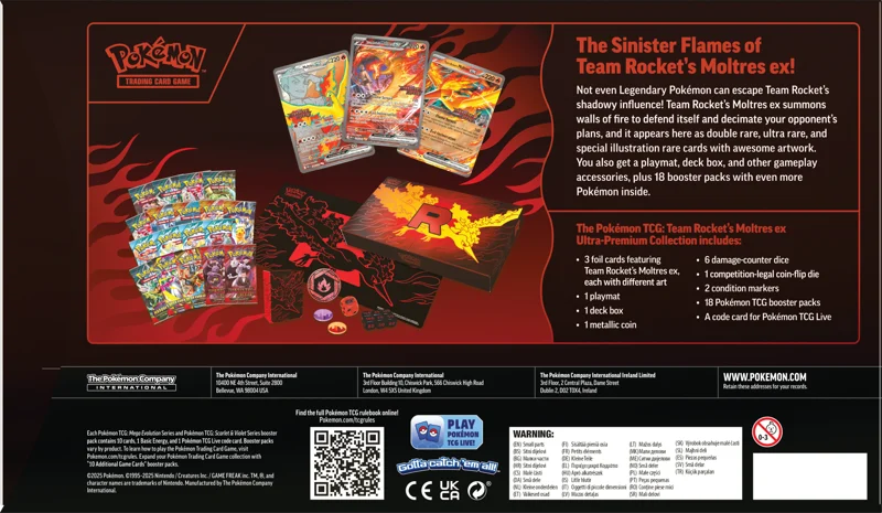 The Pokémon TCG: Team Rocket’s Moltres ex Ultra-Premium Collection includes: