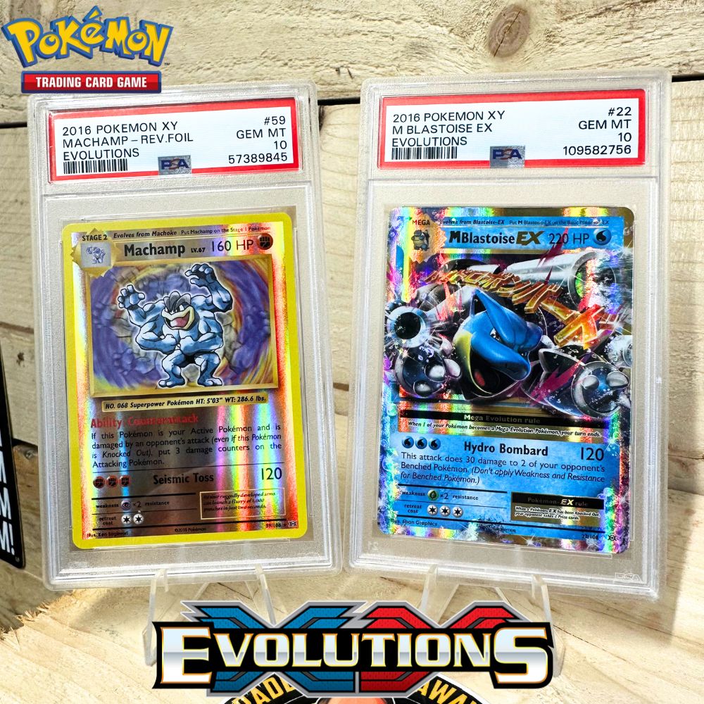 This is a PSA-graded 10 Pokémon card featuring Machamp, Card from the Very Popular XY Evolutions Set, Released In 2016.