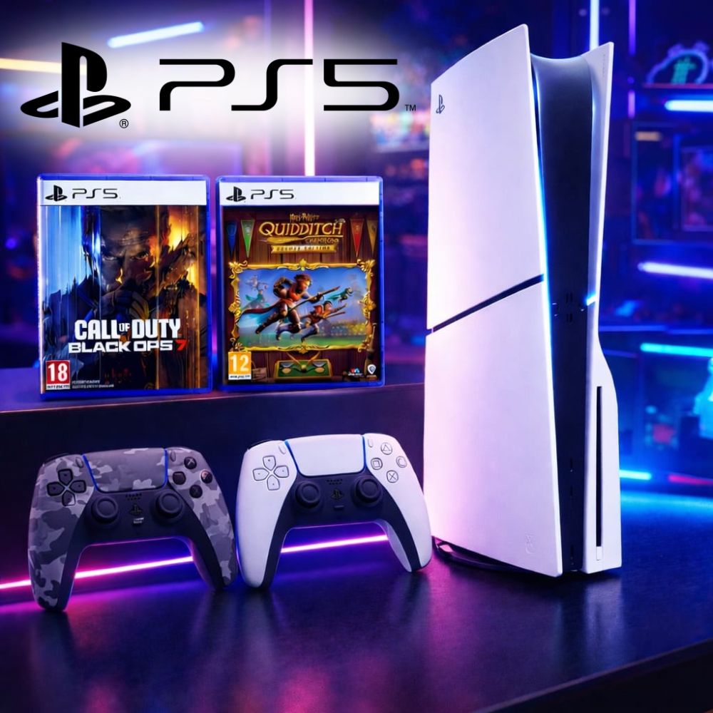 Jump into great gaming with this Sony PlayStation 5, Call of Duty: Black Ops 7, Harry Potter: Quidditch Champions Deluxe Edition & Camo Grey Controller Bundle.