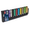The Sealey 10 Piece 3/8” Sq. Drive Multi-Coloured WallDrive Metric Deep Socket Set is a detailed selection of colour coded sockets that is perfect for a range of trades.