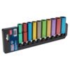 The Sealey 10 Piece 1/2” Sq. Drive Multi-Coloured WallDrive Metric Deep Socket Set from ITS is a detailed selection of colour coded sockets that is perfect for a range of trades.