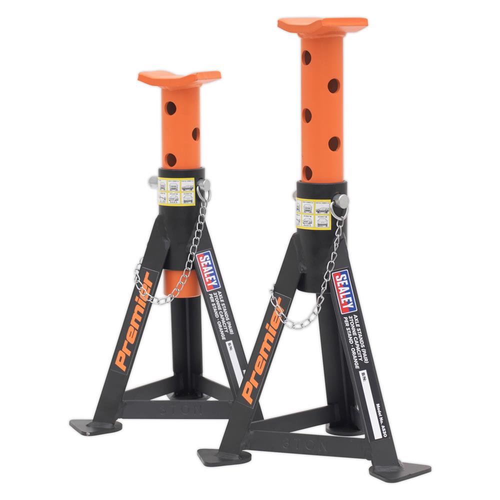 Pair of heavy-duty Axle Stands with 3 Tonne capacity per stand to safely support vehicles for extended periods of time.