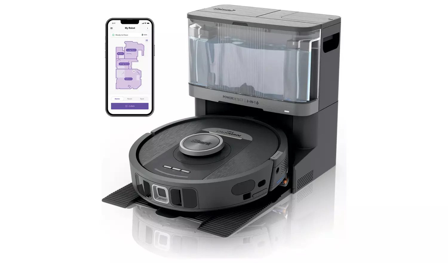 Introducing Shark’s best cleaning Robot Vacuum & Mop with NeverStuck Technology. This 2-in-1 robot deep cleans all floor types with intelligent cleaning technologies, then returns to the base to automatically empty dirt and debris, and refill with clean water, so it’s always ready for the next run. Self-Refills: When the robot returns to the base, the base automatically refills the robot’s tank with clean water. The tank holds 1.7L of water for up to 4000 sq. Ft. Of mopping coverage – that’s enough clean water for up to 30 days.