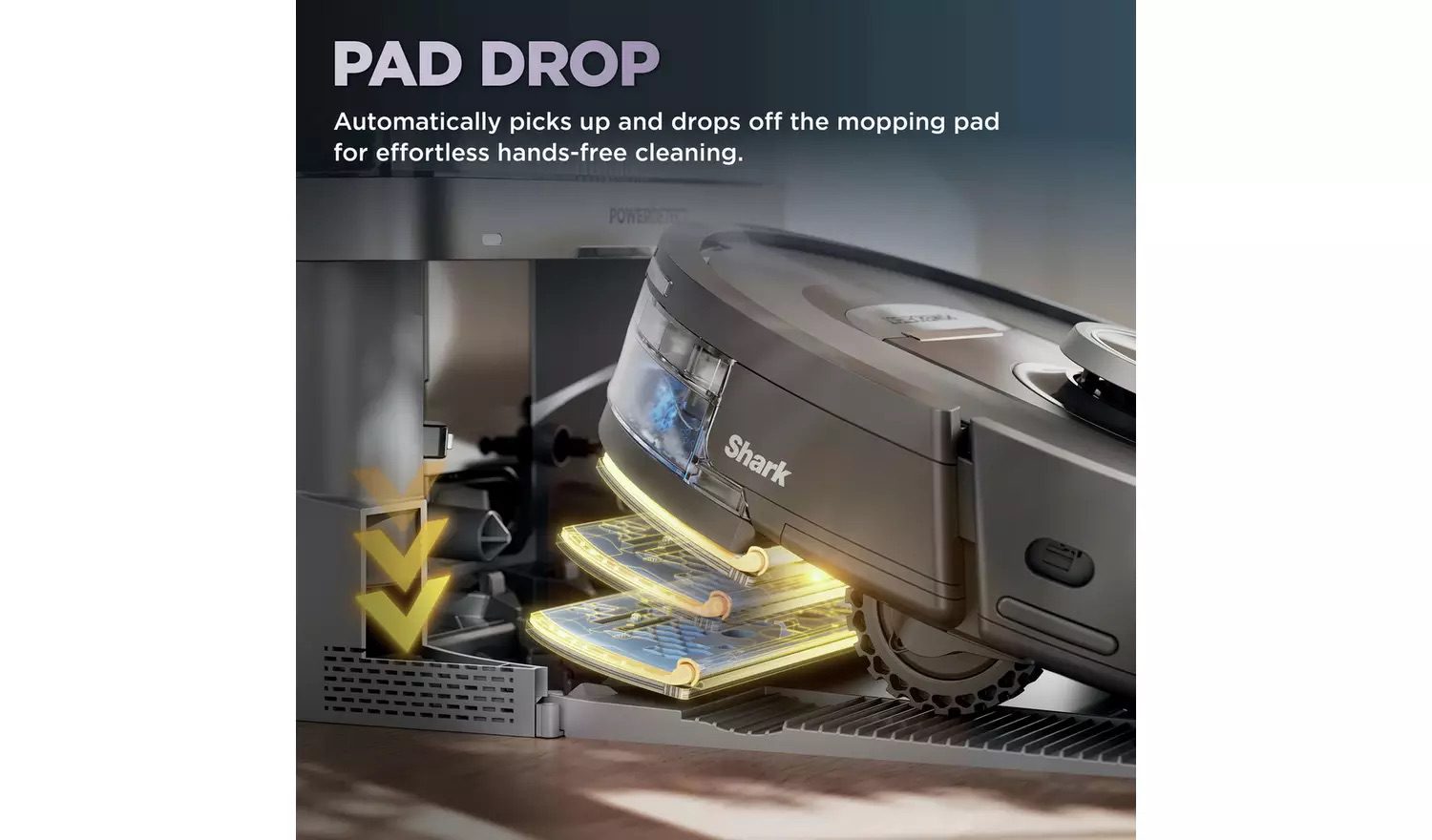 Pad Dry: The base automatically dries the mop pad when your robot returns after a mopping session. Seamlessly switch between wet and dry cleaning – the robot automatically picks up and drops off the mopping pad at the base, hands-free.