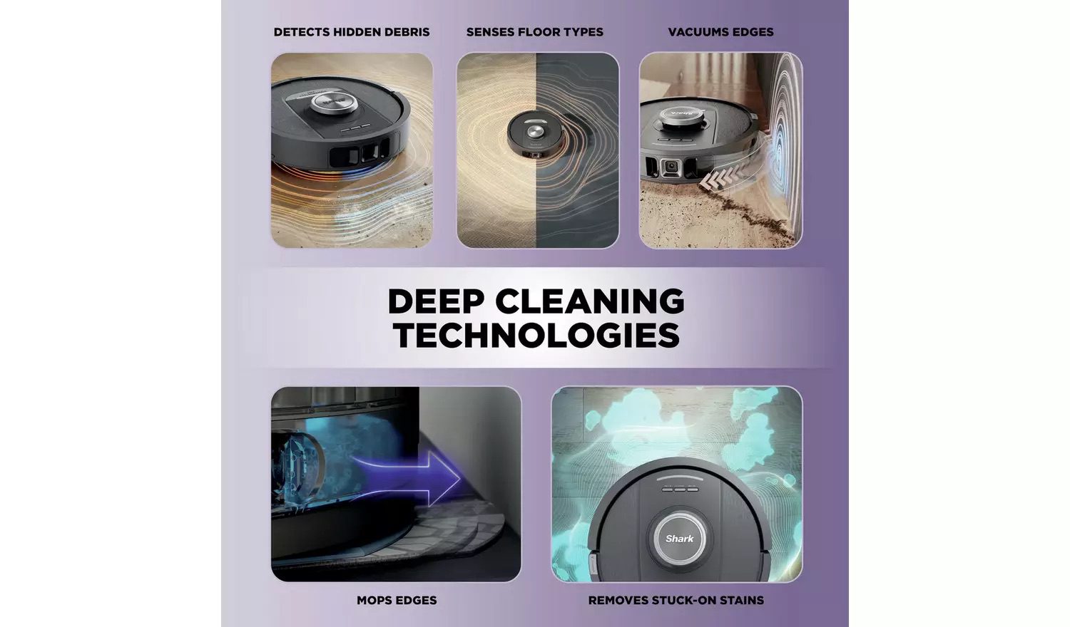 PowerDetect Cleaning Technology: Optimises every clean, detecting and reacting to your home and avoiding obstacles to ensure the robot always finishes the job. Dirt Detect, Edge Detect, Floor Detect, Stain Mode and Wet Edge Detect.