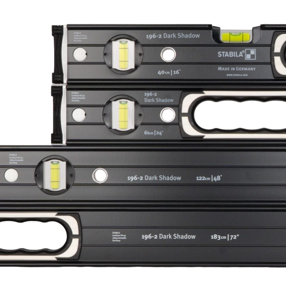 The Stabila 196-2 Dark Shadow Spirit Levelsare a limited edition set of levels from the popular Type 196-2 range available with stunning anthracite matt black coating.
