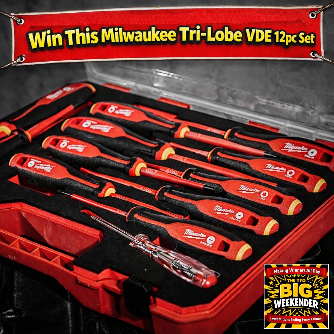 TTG BIG Weekender Auto Draw – Milwaukee 12 Piece TRI-LOBE VDE Mixed Screwdriver Set with Voltage Tester