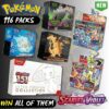 Contents: 9x booster packs (each pack containing 10 cards), 65x card sleeves, 1x foil promo card, 45x Energy cards, 6x damage-counter dice, 1x competition-legal coin-flip die, 2x condition markers, 1x collector’s box and 1x guide
