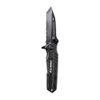 The ‘clip point’ blade with serrated edge and tapered spine swedge, along with the thumb rise on the blade spine, provide optimal grip and precision.
