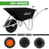 The PUNCTURE PROOF WHEEL is made with a solid foam centre, supporting 150kg loads and adjustable mounting position for easier tipping. The solid construction ensures the wheel doesn’t deflate or collapse even after punctures or tears.