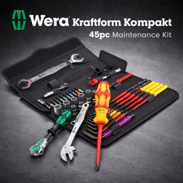The Wera 35 Piece Kraftform Kompakt W 1 Maintenance Tool Kit is a detailed selection of handtools to suit a wide range of applications, at home, at work, on the road or on site.