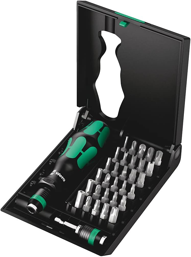 Wera Kraftform Kompact 71 – 32 piece screwdriver handle and bit set. Highly versatile and portable with Kraftform shaped handle.