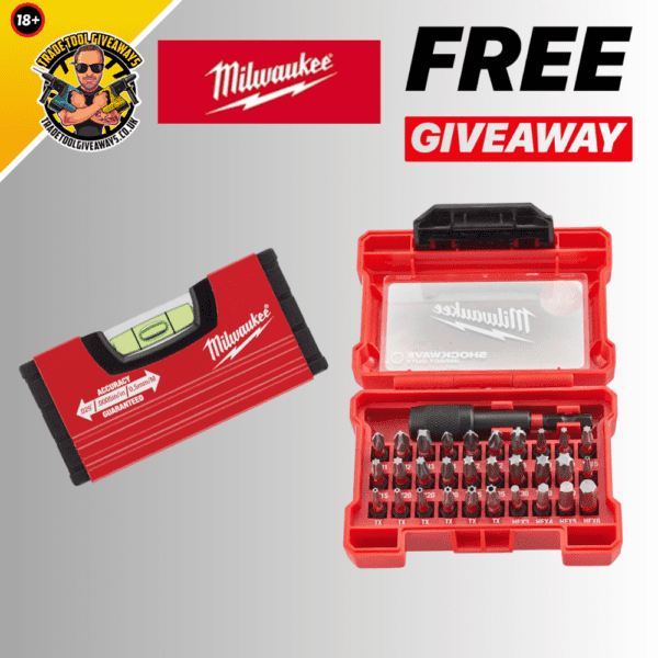 Free – Milwaukee 31pc Bit Set & Mini Box Level