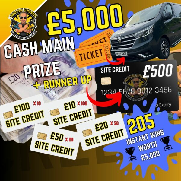 £5,000 Tax Free Cash & Runner Up – 205 Instant Wins