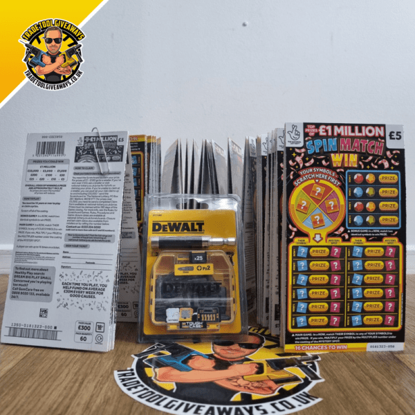 Spin Match Win – 60pk £5 Scratch Cards & Dewalt PZ2 Bit Set