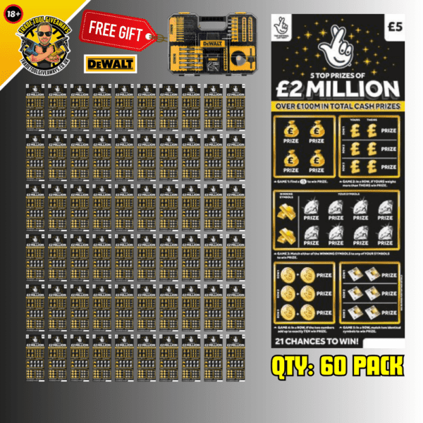 60pk £5 Scratch Cards & FREE Dewalt 102pc Bit Set