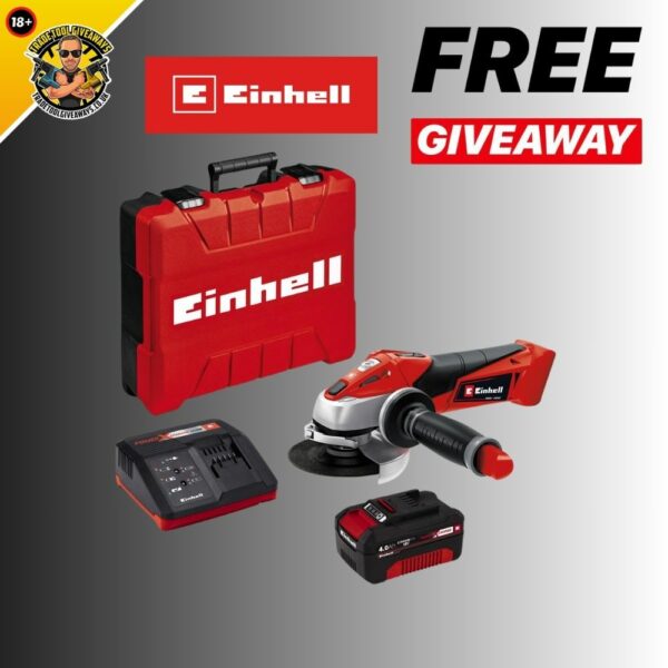 FREE – Einhell 18v Angle Grinder, Battery & Charger