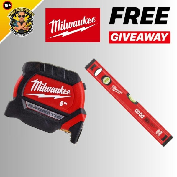 FREE – Milwaukee 400mm Level & 5m Tape Measure