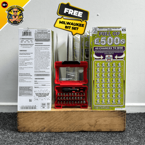 60pk £5 Scratch Cards & FREE Milwaukee Bit Set